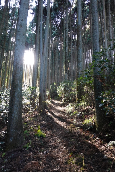 杉林の中を歩く。 |
