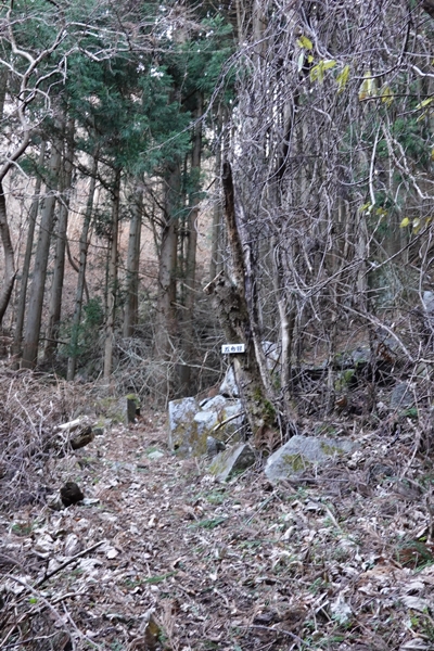 間明沢登山口側との分岐。 |