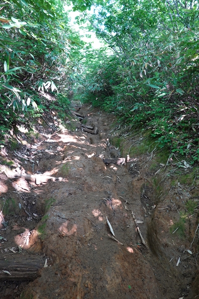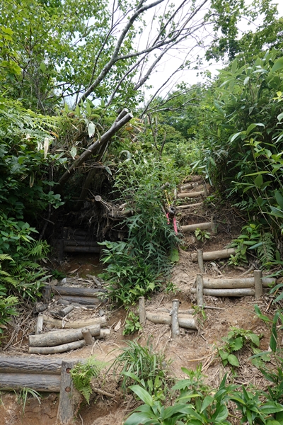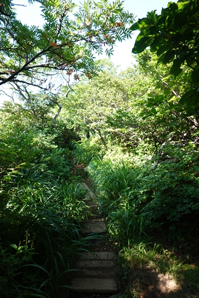 勢至平の分岐から峰の辻へ。 木陰で風があると涼しくなってありがたい。 |