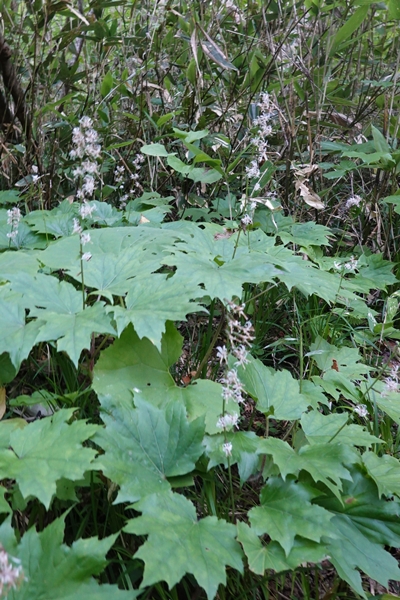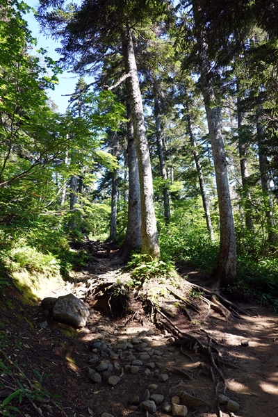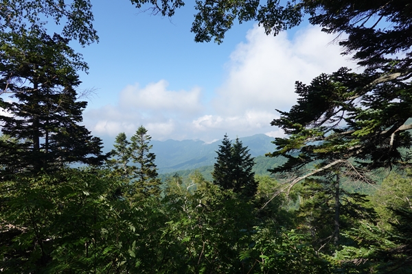 たまに木々の合間から展望もありますが、ほとんど木々の中を黙々と登る。 陽が当たらず涼しいのは良かったけれど。 |