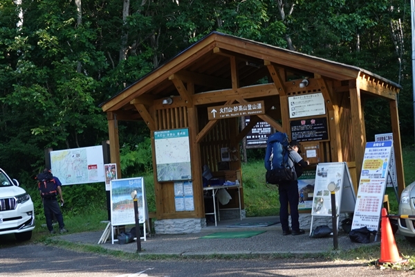 登山口。 登山届を回収されている方がいらっしゃいました。 |