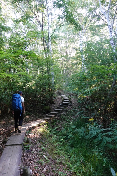 左膝が痛い長男、木道の硬さもつらかったかな? |