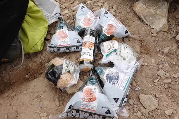 景色がなくとも、おにぎりで腹ごしらえ。 |