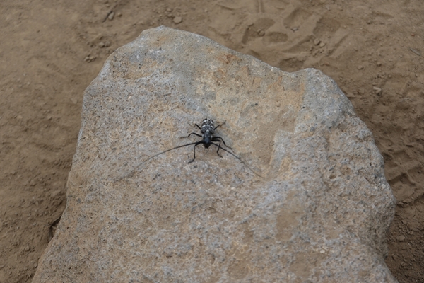 しばし休憩・・カミキリムシも暑さでヘロヘロ? あまり動かなかった。 |