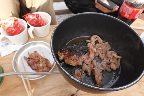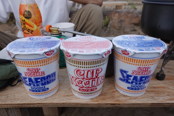 黒沢池ヒュッテに戻って昼食。 子供たちは肉うどん、私はいつものカップラでした。 |