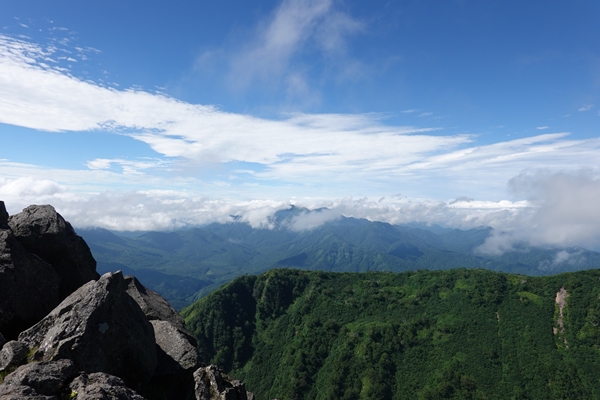 戸隠方面? 雲がなければ北アルプスも見えるらしいがどの辺かよく分からずでした。 |