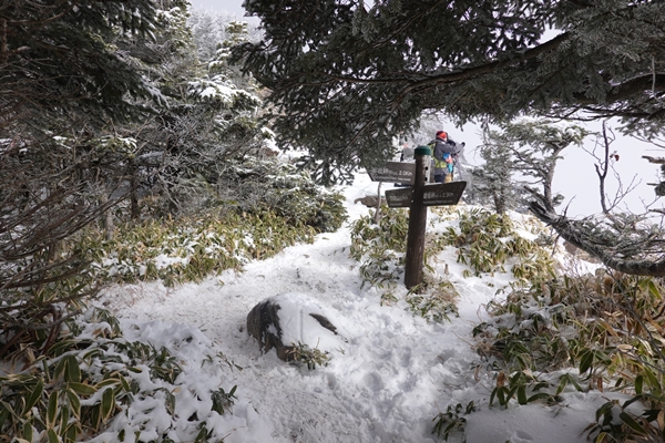 黒斑山山頂。 真っ白で何も見えず、残念。。。 |