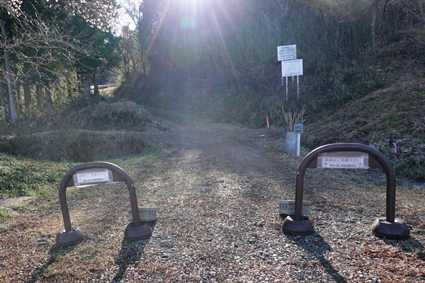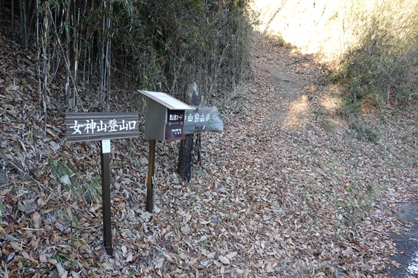 堀切登山口(上)。 こちらにも登山ポストと新年のあいさつ文がしっかりありました。 |