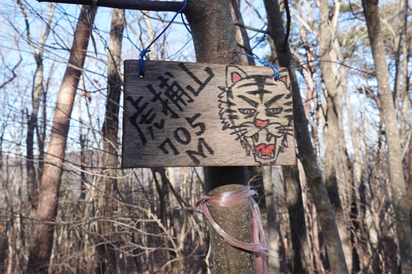 展望がなく寂しい山頂でしたが、虎の絵が迎えてくれてました。 |