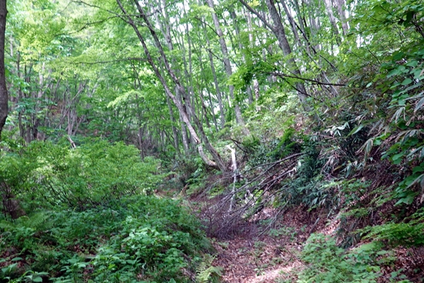 先行者が1台と思ったら山菜取りの方だったようです。 結局、道中登山者には全く会いませんでした。 |