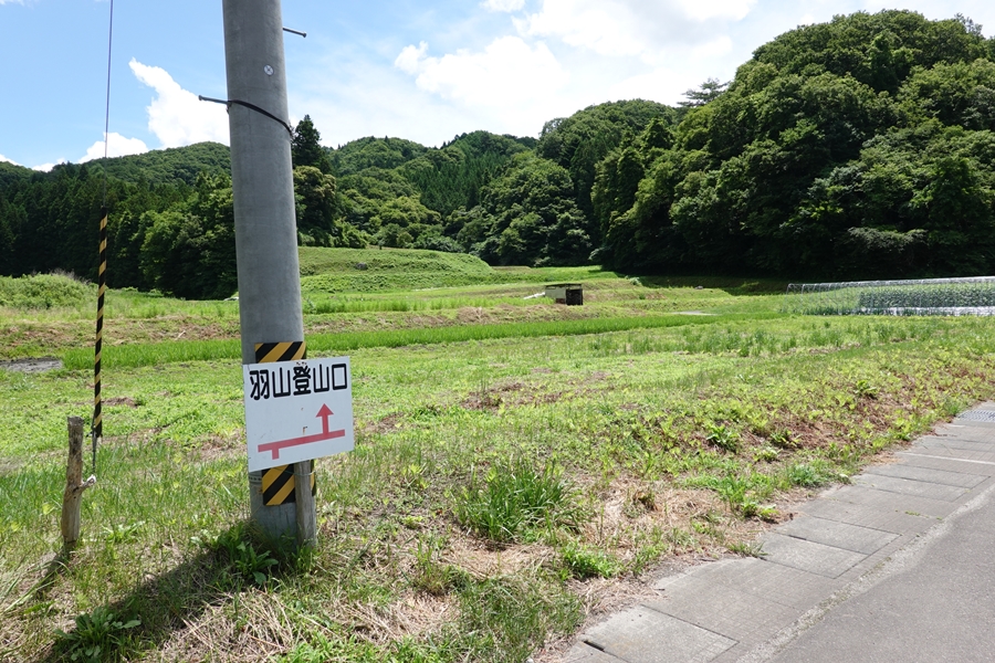 ここが登山口です。 右側の畑の土手を歩いていきます。 |