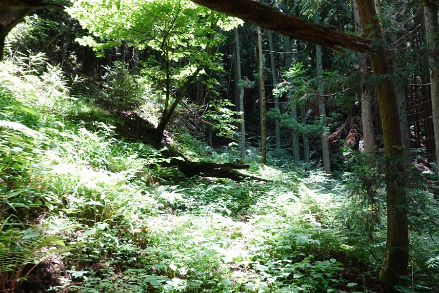 林の中で草が少ないところは歩きやすい。 |