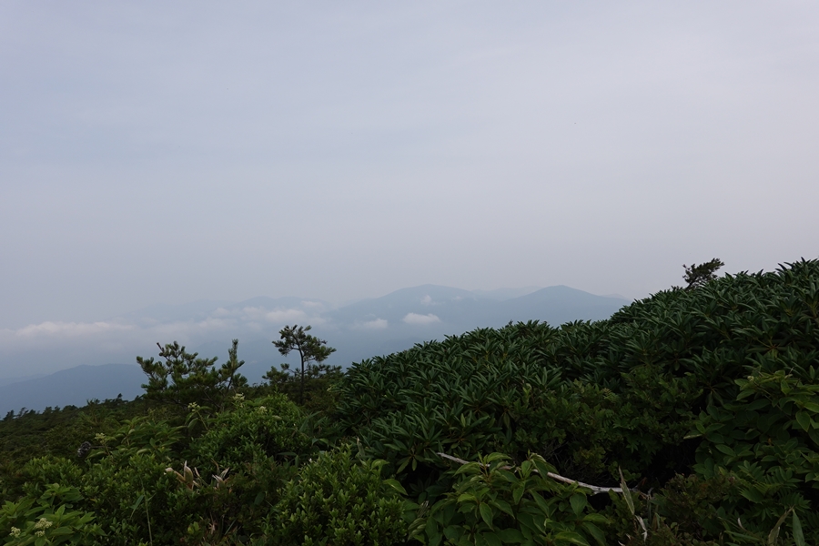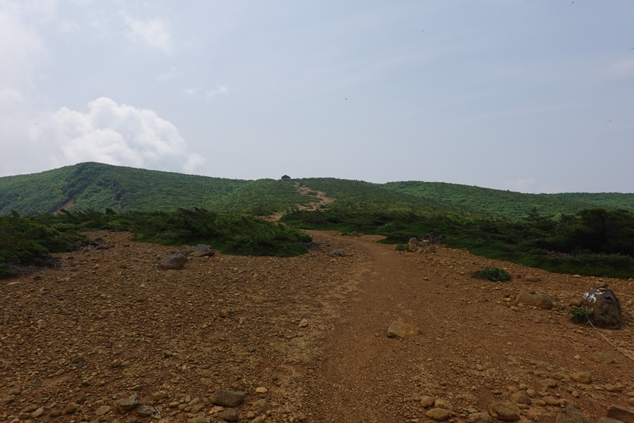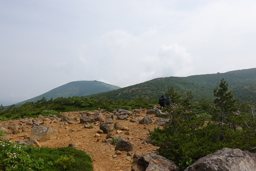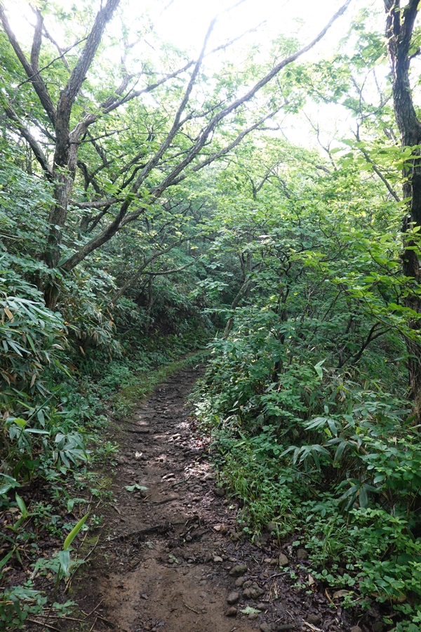 沼ノ平はそろそろ見納め。 下山したいのに、このあたりまで1600m以上の尾根道が鉄山避難小屋あたりから延々続いていて、全然標高が下がらなくて心が折れそうでした。 |