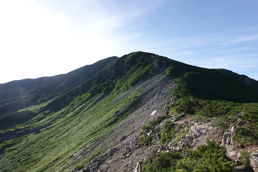 赤木岳を超えて最後のピーク、北ノ俣岳。 まだあるのと妻からクレーム・・ですよね〜、、 |