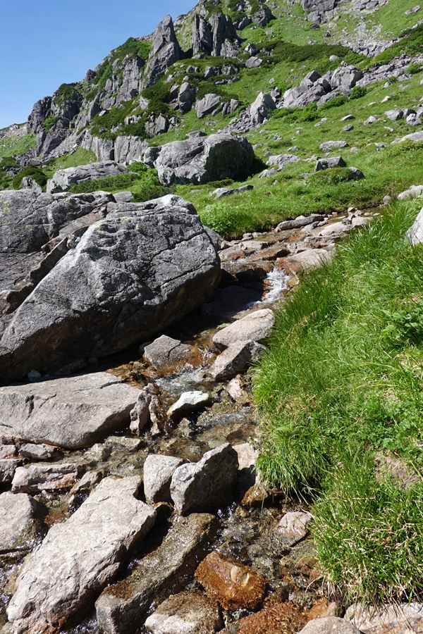 カールの中でも水が流れているところがいくつもありました。 残り少ない雪解け水? |
