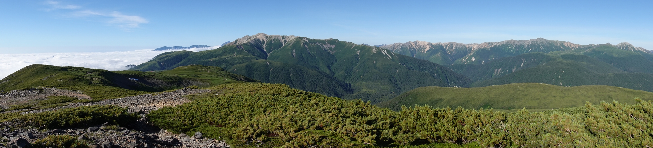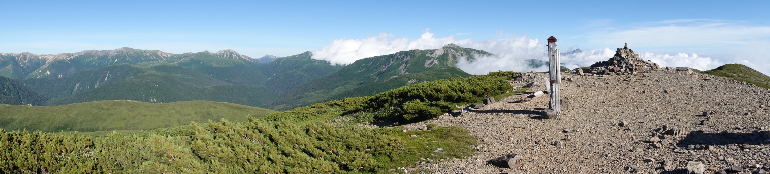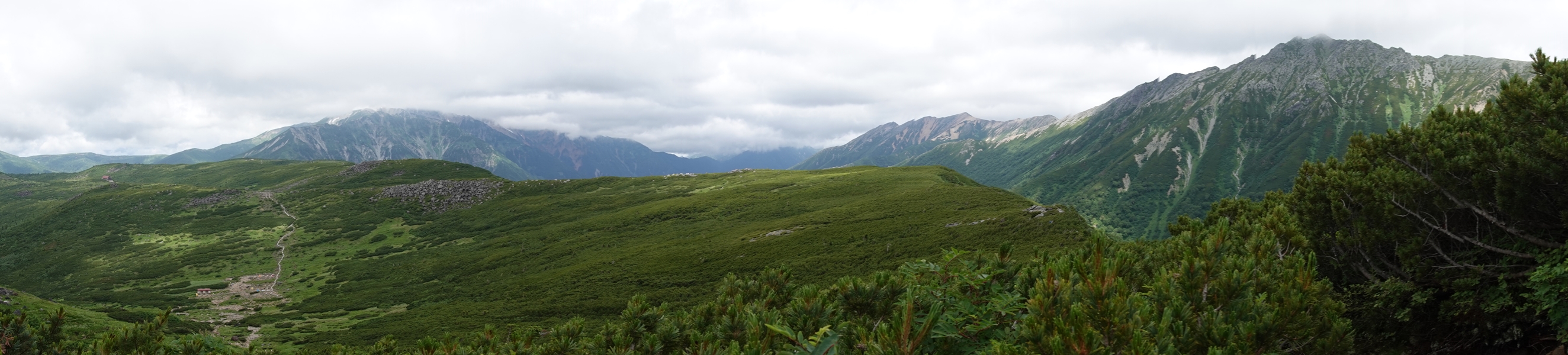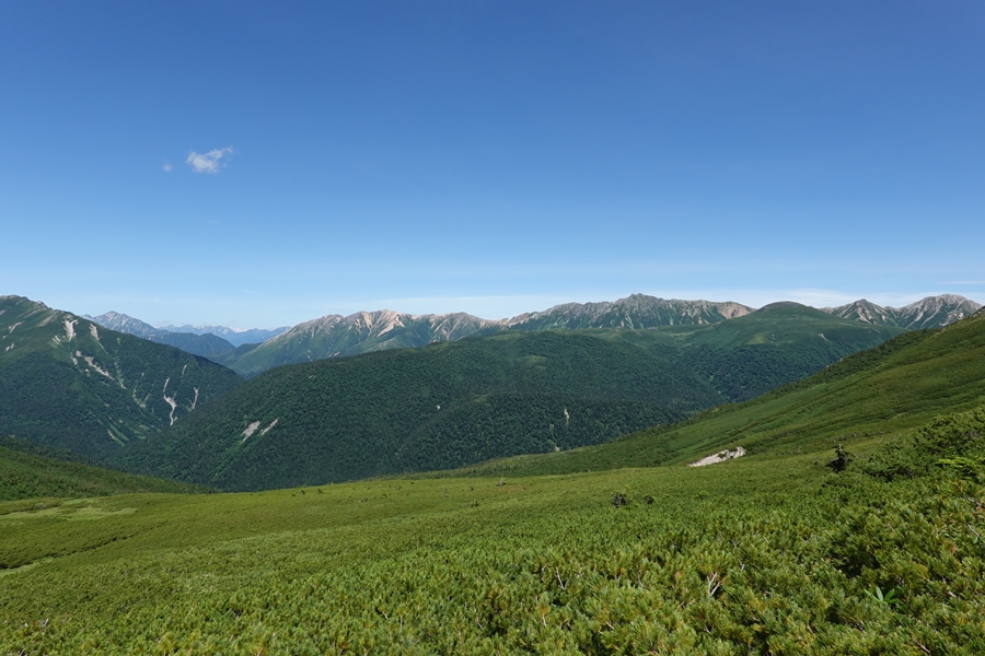 ここからだと槍はほとんど隠れていて、穂高の方が顔を出してました。 |