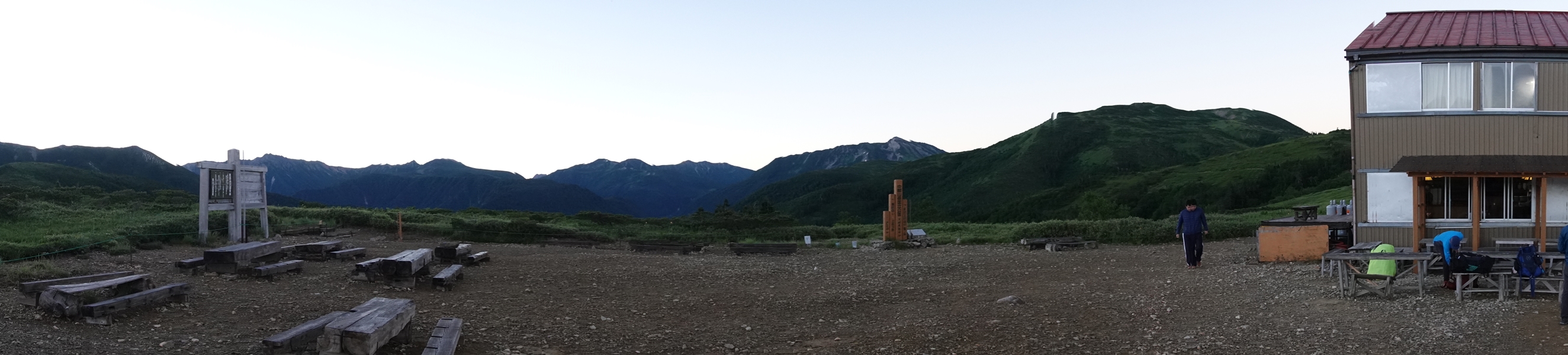 太郎山の端から太郎平小屋が見えた時はほっとしました。 実際はもっと暗かったですが、おひとりほぼ同時に下山した方(お元気)がいらっしゃいました。 |