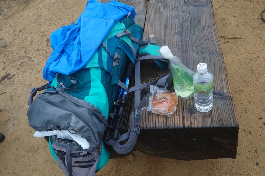 ちょうど雨が小康状態でパンを食べながら休憩できました。 |