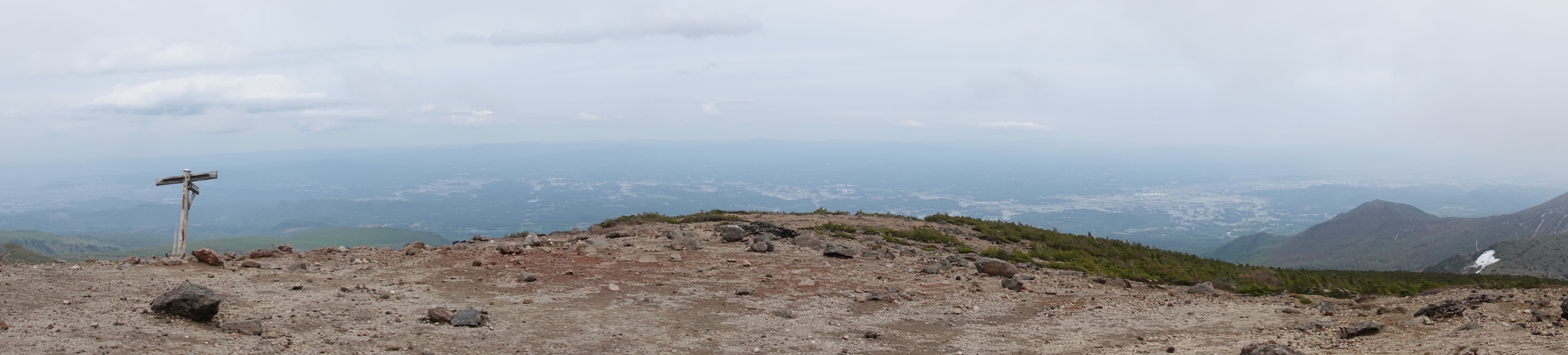 雪解け水はこの残雪から。 二本松方面は見晴らし良くていいですね〜。 |