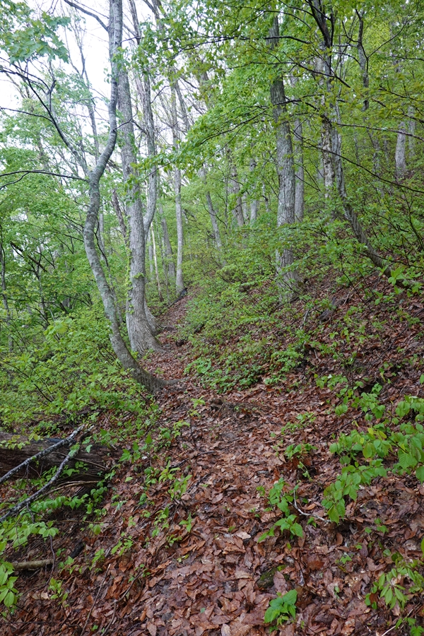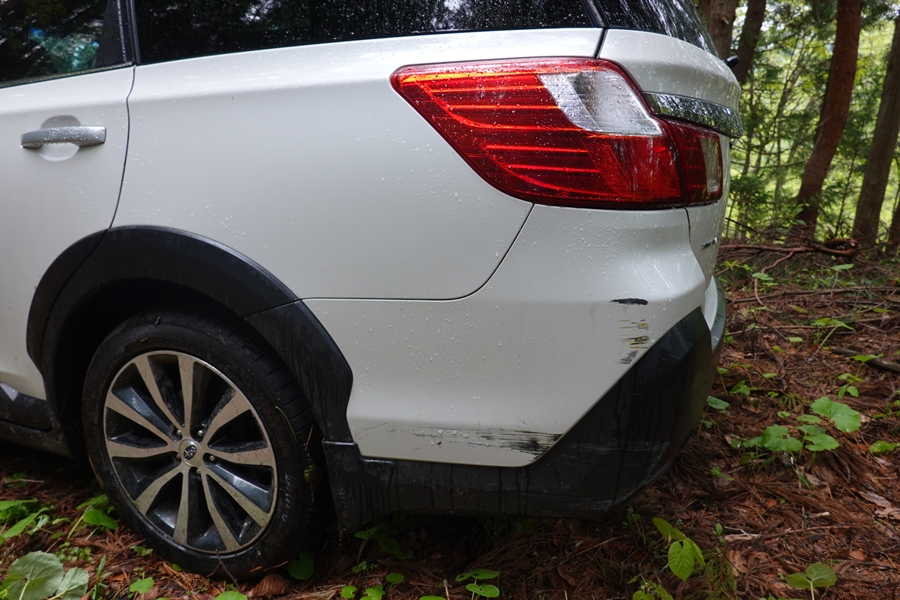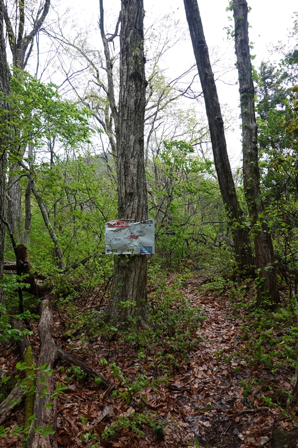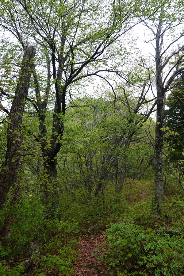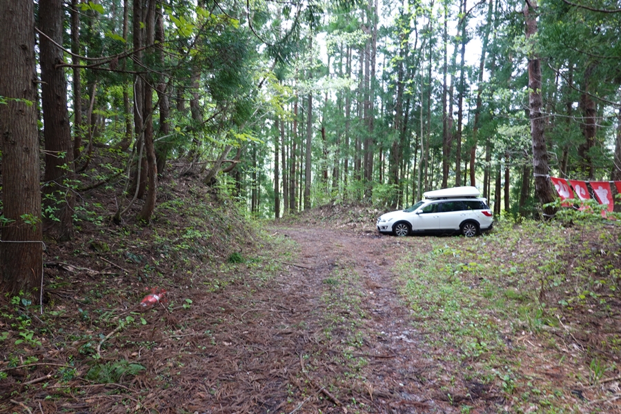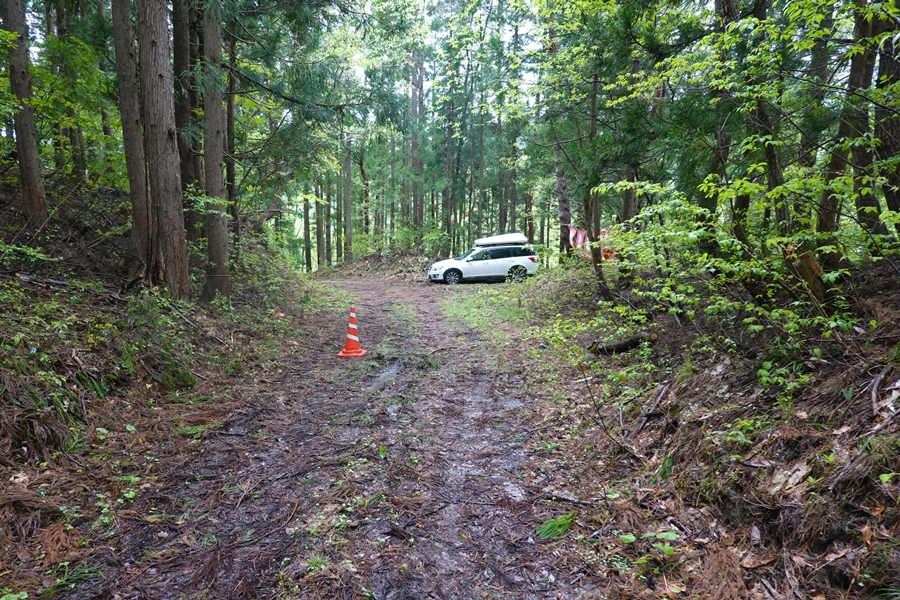 来る途中に迷ってバックしているときに、ブロック塀に擦ってしまいました。。 雨だし登り始めはテンション低かったのですが、新緑には癒されました。 |