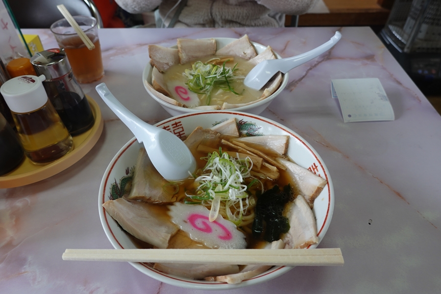 帰宅途中、喜多方で昼食。 妻は喜多方ラーメンぽくないとんこつ味。 |