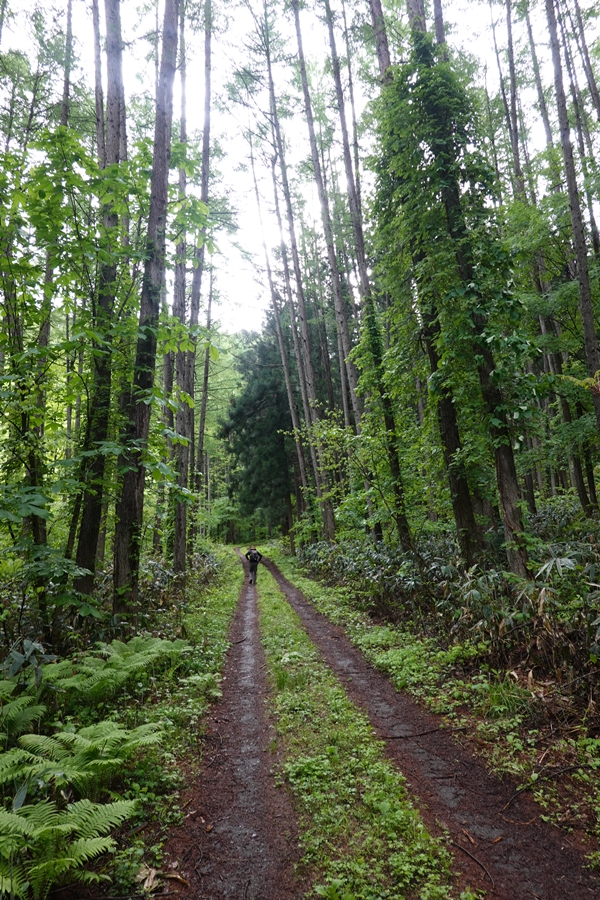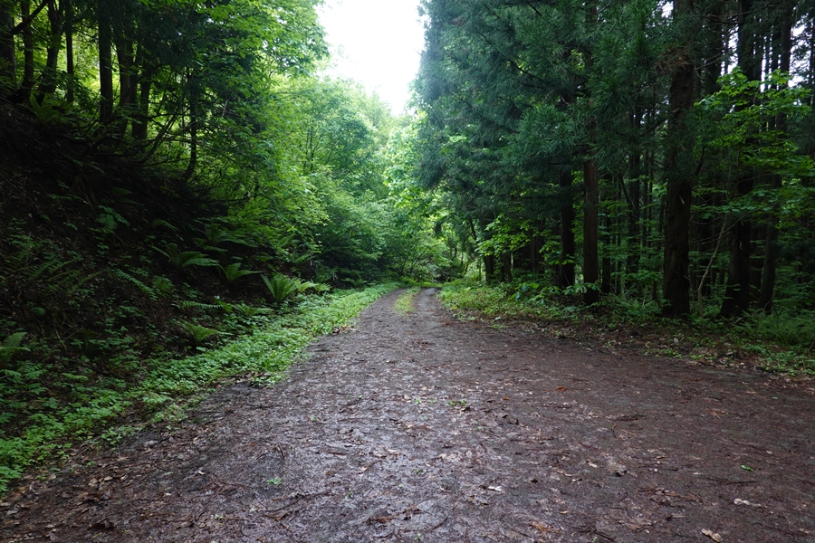 すぐに林道が再び現れ、またしばらく林道歩きに |