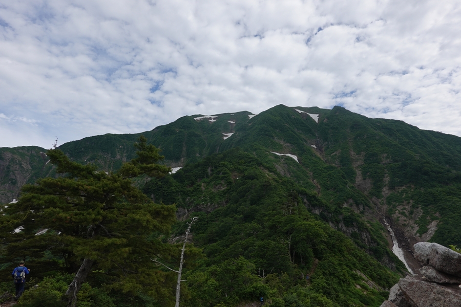 山行記へ 山の写真へ 山ある記Topへ ルート 第1日 田子倉登山口〜大久保沢の水場〜田子倉眺め〜剣ヶ峰〜鬼ヶ面眺め〜浅草岳〜前岳〜浅草岳〜鬼ヶ面眺め 〜剣ヶ峰〜田子倉眺め〜大久保沢の水場〜田子倉登山口 備考 累積標高差:約1250m コースタイム:第1日 6時間30分 第1日 会津の山開き詣で第2弾ということで、大嵐山に続いて浅草岳に行くことに。平日晴マークながら、日曜日から 天気が崩れる予報だったのが、近づくにつれて予報が変わって何とか持ちそうな予報になってきて一安心。 前日、会津若松にいる長男のところに寄り、翌日の食料の買い出しと夕食を食べてから二人で登山口へ向かいました。 5月に田子倉ダムを訪れていた時にあった冬期閉鎖のゲートが無くなり国道252号線を進んだ先に登山口の田子倉 無料休憩所に到着。21時頃に到着したように思いますが、広い駐車場に既に数台の先客がいました。車中泊の準備を して無料休憩所へ・・思った以上に真新しくきれいな内部で、トイレもきれいに管理されてました。駐車場に 車中泊・キャンプ禁止の看板が立っていたのがちょっと気になりつつ、翌朝に備えて就寝。気温はちょうど 寝やすいくらいでした。 翌朝、5時前に起床。雲がかかっていますが、駐車場から浅草岳が見え、ところどころ青空も見えるくらいで 登山日和の雰囲気。無料休憩所が登山口かと思っていたんですが、登山口の駐車場はもう一つ奥にあったようで、 登山者はそちらに集まっているよう。朝ご飯を食べてから我々も少し移動して登山口へ。こちらも広く、相当数 駐車できそうですが、案内する人の指示に従って駐車。テントで受付をして山バッチをもらい、6時前に登山開始。 木道を少し歩き15分ほど歩くと仮設の橋に到着。片側は手すりがないのでちょっとおっかない橋ですが、見た目より しっかりしていて揺れることなく歩けました。そこからだんだん登りが始まり、大久保沢の水場の看板があった 大きなブナを越えると傾斜が急になり、早朝ながら汗をかき、水分補給しで登っていきます。二人で3.5L分の 水分を持ってスタートしましたが、もう少し持ってきた方がよかったかと思う暑さでした。田子倉の眺めの手前 あたりから岩場も出てきて、1時間ほどで田子倉の眺めに到着。田子倉湖だけでなく浅草岳がドーンと登場し、 ご立派な姿が眼前に現れました。 田子倉の眺めからは尾根歩きになり、見晴らしがよい道になり道端の花も増え楽しい道に。鬼ヶ面の眺めからは 鬼ヶ面山の屏風のような岩壁がなかなかの圧巻の姿でそびえてました。一旦緩やかになった後、再び急登になり、 幅の狭い崖のトラバースのようなところも注意しながら歩きますが、危険なところにはロープがしっかりありました。 花も多く咲いていて、この時期の名物らしいヒメサユリも所々に咲いてました。ただ、最盛期にはだいぶ沢山咲く みたいですが、それからするとまだ序盤だった雰囲気、雪が多くて遅いのに対して夏が来るのが早くて歩くには 既に暑く下界は30℃超え、なんとも変な気候ですね。。そんなこんなで歩き始めて3時間弱で浅草岳山頂に到着。 360°の大展望が広がっていていいところなのですが、虫が多くて長居しづらいので前岳に向かって移動。池塘の先に 守門岳が見える絶景スポットを過ぎて進むと雪渓が出てきて木道が雪の中になり道が不明に。前岳山頂が よく分からず雪渓周辺をウロウロしてみましたが、結局よく分からず池塘のところにあった木が敷かれたスペースに 戻って休憩。以前はベンチがあったのかもしれませんが、板間状態になっている場所で早めのお昼ご飯タイム。 景色は良いし、山頂違って虫がいないので休憩にちょうど良い場所でした。 休憩後山頂に戻り、記念撮影して10時頃に下山開始。山開きで続々と登ってこられる方とすれ違いながら進みますが、 道幅が狭くてすれ違いが大変なところもあるので慎重に。天気も良く、日本300名山でもある浅草岳の山開きは 大賑わいでした。日も出て暑いので水分の消費も進み、下山時にはほぼ全部消費しちゃいました。鬼ヶ面の眺め以降は 登ってくる人もいなくなり、静かな山歩きに戻って12時過ぎに駐車場に到着。展望も花も素晴らしく、いいお山でした。 距離のわりに標高差は大きめで急登も多かったですが、ここはいいね、さすが300名山と長男も満足気。下山後、 深沢温泉で汗を流して会津若松経由で帰宅。6月から30℃超えと福島も暑い日ですが、田子倉の眺めから上は風が涼しく まだ歩き易かったかなと。その下の林の中は登りの時から顔が火照る感じで水分取らないと熱中症になりそうな感じ、 これからのシーズンが心配ですねぇ。 2025.7.6記 |