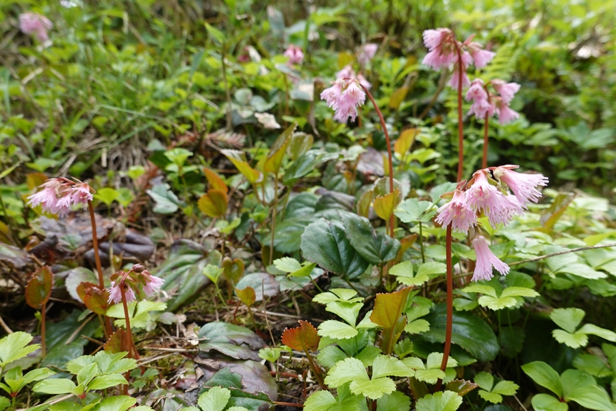 ミツバオウレンとイワカガミ |