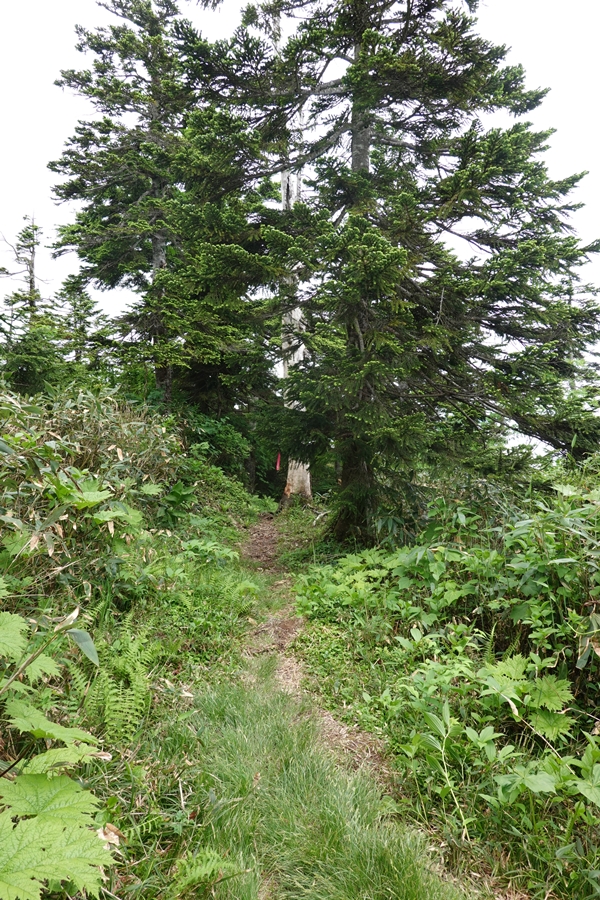 疲れを癒してから下山します。 山頂直下の分岐。 |