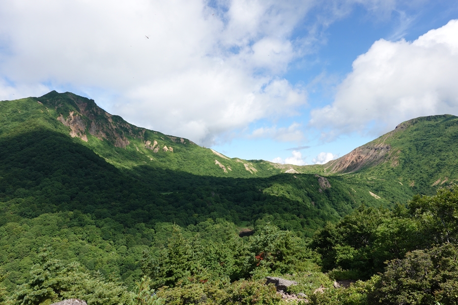 山行記へ 山の写真へ 山ある記Topへ ルート 第1日 猪苗代登山口〜交流の家分岐〜天の庭〜赤埴山下分岐〜赤埴山〜沼ノ平〜三合目分岐〜黄金清水〜弘法清水 〜磐梯山山頂〜弘法清水〜弘法清水分岐〜お花畑〜お花畑東分岐〜黄金清水〜三合目分岐〜沼ノ平〜赤埴山上分岐 〜天の庭〜交流の家分岐〜猪苗代登山口 備考 標高差:約1200m コースタイム:6時間45分 第1日 今週は妻が日曜日も出勤ということもあり、久し振りにソロ活。妻が歩くなら裏磐梯からと思ってましたが、 一人なので歩いたことのない表側から歩くかと猪苗代登山口からの往復コースへ。クマ除けに長男を連れだしていた こともあって、前回のソロはいつだろうと調べたら1年近く前の磐梯山以来、こちらは偶然でした。 早起きして登山口へ向かい、猪苗代スキー場の駐車場へ。登山者用駐車場の看板があり、広い駐車場にはトイレの他、 有料のRVパークがありました。最近車中泊スポットが増えてますね。軽く準備をして7時前に出発、既に暑いです。 リフトが7:30から営業開始で乗ると標高差400m分稼がせてもらえますが、トレーニングにならないのでゲレンデを 歩きます。7時ですでにリフトは動いてましたが試運転?テント場になっている日除けのないゲレンデを登っていくと すぐに汗だくに。第1リフト分から第2リフト分にゲレンデを移りながら歩くこと1時間弱でゲレンデ歩きから登山道へ 移行。ゲレンデ歩きは暑さだけでなく急でもあって体力削られました。。スキーの時はいいゲレンデだった記憶ですが。 登山道になると傾斜が比較的緩やかになり、林の中にもなるので歩き易い。赤埴山への分岐で赤埴山側へ行くと 尾根道に出て日差しが当たるようになるも、雲海や磐梯山、ツリガネニンジンと楽しい道。8時半頃に赤埴山に到着。 磐梯山〜櫛ヶ峰一帯がよく見える展望台。八方台と反対側で、これまでと違った磐梯山が見れていいですね。 少し休憩してから磐梯山へ。一旦下った後は沼ノ平までしばらく木々の中の平坦な道を歩くので暑くもなく快適。 沼ノ平から裏磐梯側からの登山道と合流する尾根にあがるところから登り再開、尾根に出ると裏磐梯側の展望も開けます。 銅沼の先に桧原湖が見えますが、絶壁の淵にいる感がなかなか。沼ノ平側から見上げる磐梯山も絶壁で、噴火口が いくつもあるってことなんでしょうか。そこから九十九折りに斜面を上っていくとお花畑登場。タカネ?ナデシコが 満開で過去一咲き誇ってました。前にも通ったことあるけどこんなに咲くんだという感じでした。他にもいろいろ 咲いてて花盛りでした。雪が多かったおかげで8月でも花が見頃だったのでしょうかね。お花畑には黄金清水もあって、 冷たい水を一杯、暑い日にとても美味いですね〜。一息ついて弘法清水までもう一登りすると八方台からの方も 合流するので賑わってました。 弘法清水で再び給水、今度はいっぱいでなくがぶ飲み&空いたペットボトルに補給。そのままパン食べて エネルギー補給もしてしばし休憩したのち、最後の一登り。急坂に息を切らせつつ、10時過ぎに山頂到着。 残念ながら雲が湧いてきたので朝は猪苗代湖側から山頂が見えていましたが、山頂からは猪苗代湖は見えず。 桧原湖も雲の合間にという感じ。山頂から猪苗代湖が見える確率が低い磐梯山、朝、湖の水が蒸気になって 雲になっちゃうんでしょうか。代わりにお出迎えしてくれたのがアキアカネの一群、たくさん飛んでました。 逸れに混ざって一部蝶が飛んでましたが、アサギマダラはおらず・・暑いのでまだ南下してきてない? 山頂で再び休憩して晴れ間を待つも雲が晴れないので10時半頃に下山開始。弘法清水までは多くの登ってくる方と すれ違いながら下る。磐梯山、大賑わいですねぇ。 弘法清水の水を再び飲んでから八方台コース側を少し歩き、お花畑へ。こちらは登りの勝手に名付けたお花畑と 違い、地図や看板にも書かれているお花畑で、お花畑越しに磐梯山が見える。こちらもキオンやナデシコが花盛り で裏磐梯側の景色も見える良いとこですが、黄金清水辺りの方が花の密度は濃い印象でした。咲いてる花は同じ感じ。 その後裏磐梯コースから分かれて沼ノ平側に下り、来た道を戻る。リフトの終了時間が14時半と早いのですが、 午前中いっぱい登ってくる方とすれ違っていたので、下りはリフト使わない方多いんですかね。帰りは赤埴山に 寄らずゲレンデに戻るとやはり暑い。。最後のゲレンデ歩きの30分もしんどかったですが、12時半頃に無事下山。 初めて歩いた猪苗代コース、思った以上に賑わってました。リフト使うと八方台コースと大差ない感じながら 見所多い印象、リフト使わない場合は妻だと敬遠しそうですが、リフト使わずにサクサク歩いてる方も多いのでしょうか。 暑い時も水場がしっかりあるのがありがたい磐梯山、3Lくらい水分補給した木がしますが、半分は水場で調達、 荷物的のも冷たさ的にも素晴らしい。安達太良山は水