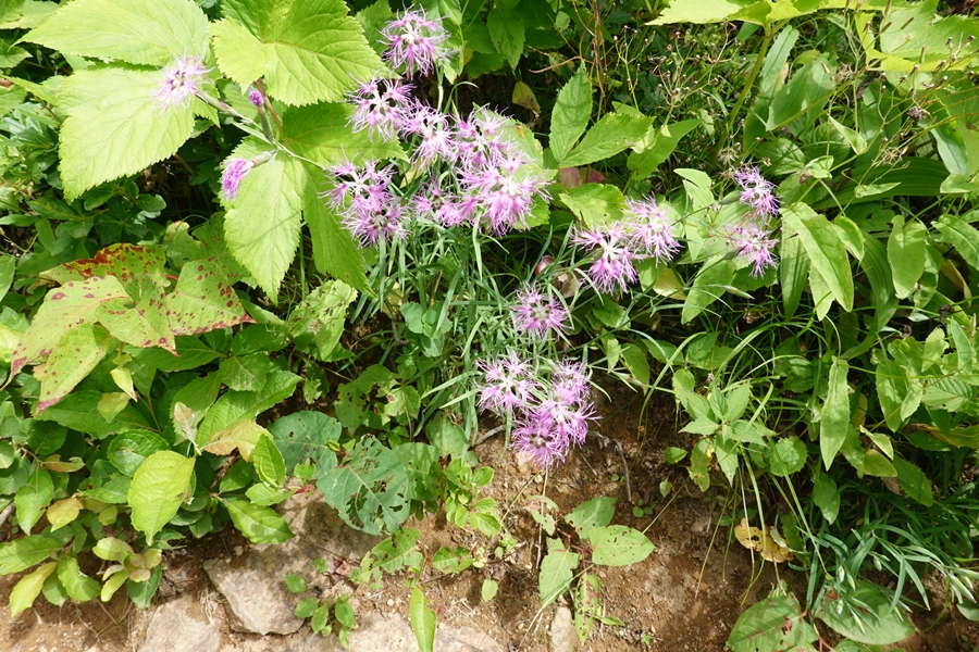 道端にもナデシコ。 登山道がここに限らず刈払いされてますが、花は残して刈ってある感じでした。 |