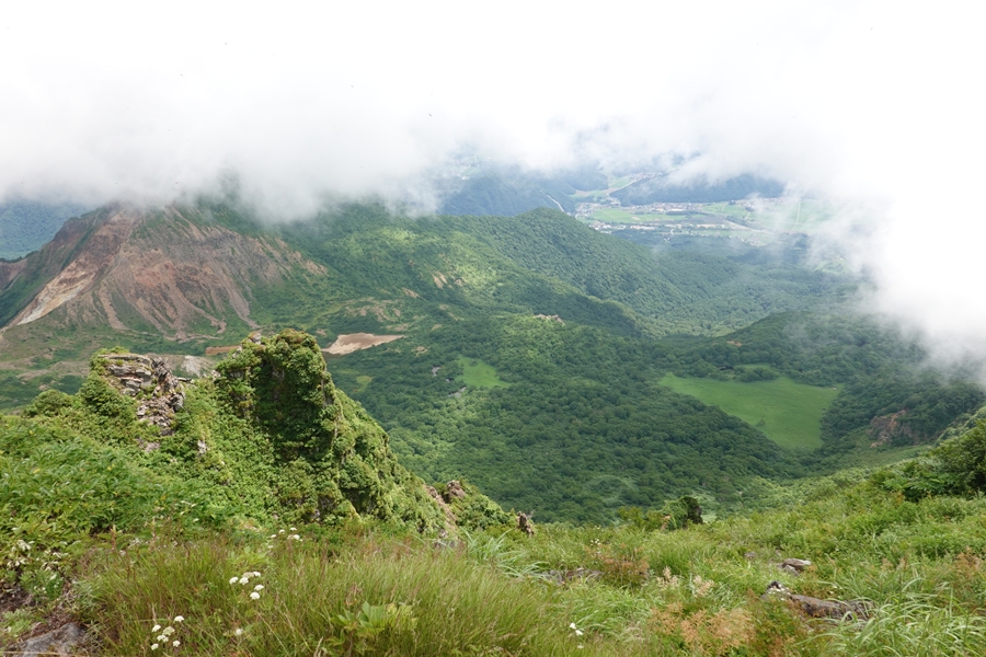 裏磐梯側も微妙ですが、沼ノ平は見えました。 歩いたとこ見えるのはいいですね。 |
