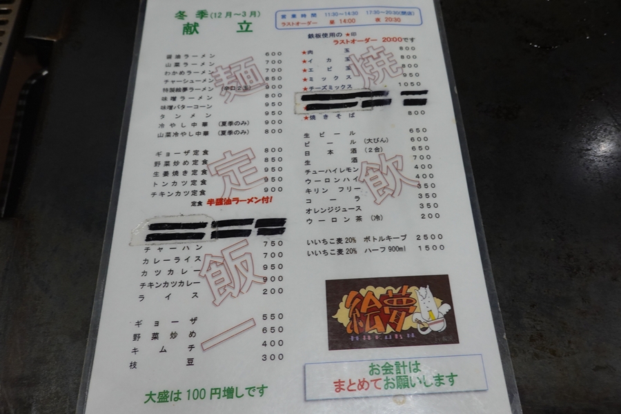 前夜、白馬駅前の絵夢で夕食。インバウンドを感じないお値段。 |