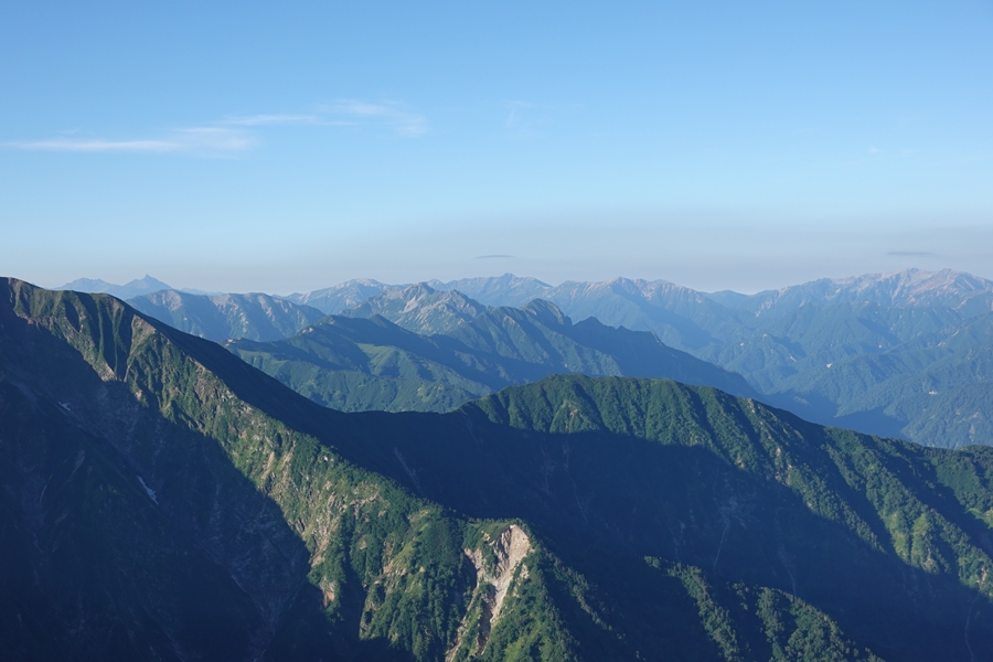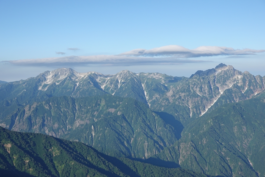 後立山連峰。 歩けないけどどこまでも歩いていけそうな山並み。 |