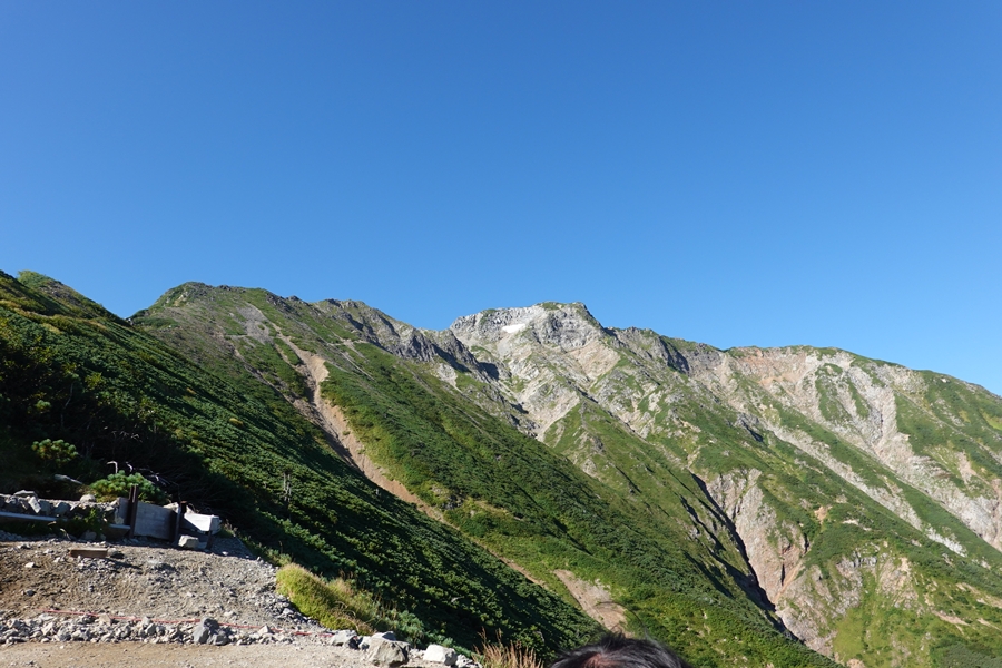 五竜山荘も目前〜。 久々のテント泊装備が重く疲れました。 |