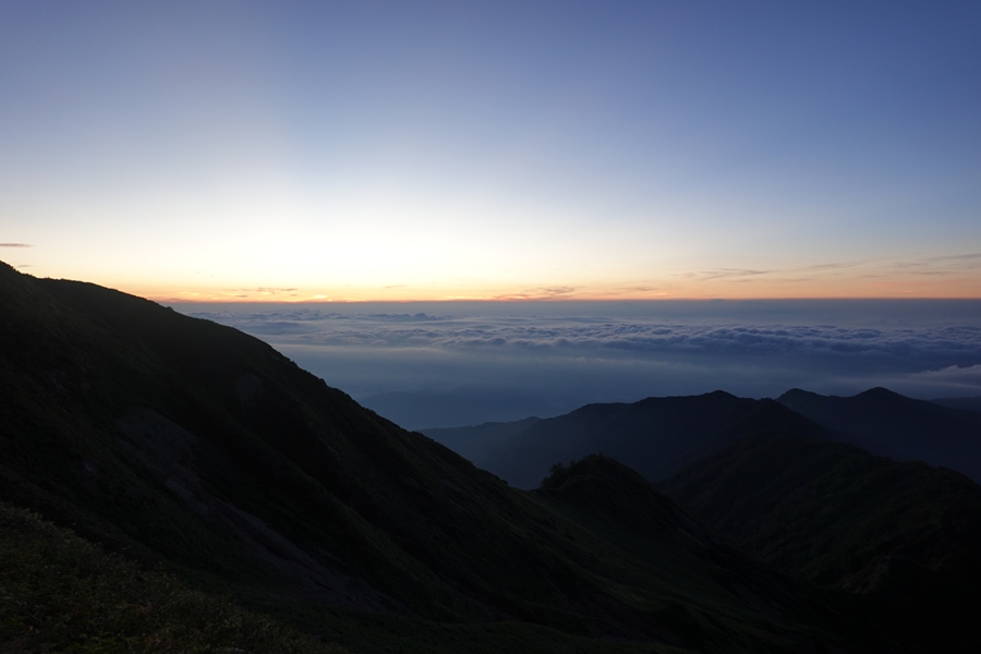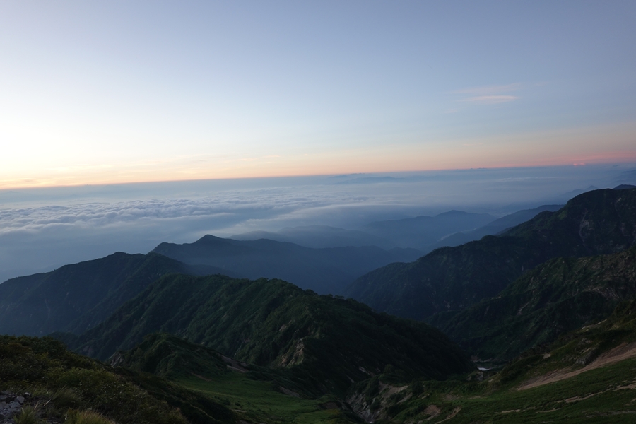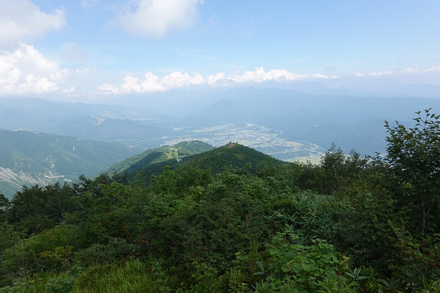 稜線沿いに出ると展望が開けました。 ガスは白馬村側で止まってる感。 |