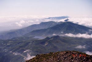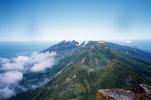 ウトロのオロンコ岩から知床連山を仰ぎ見る。