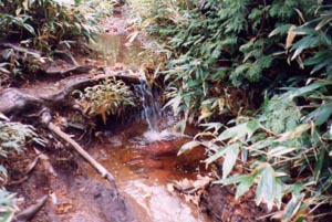 前日の雨で登山道が川になっていた。