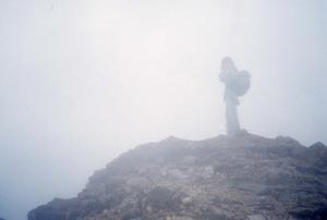 ガスに覆われた吾妻小富士の中。