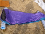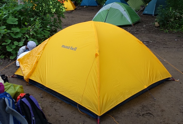 秋の山テント泊時の防寒用に135pを購入。上下黒タイツ姿に子供たちがうけていた(笑)。