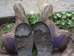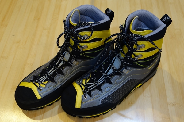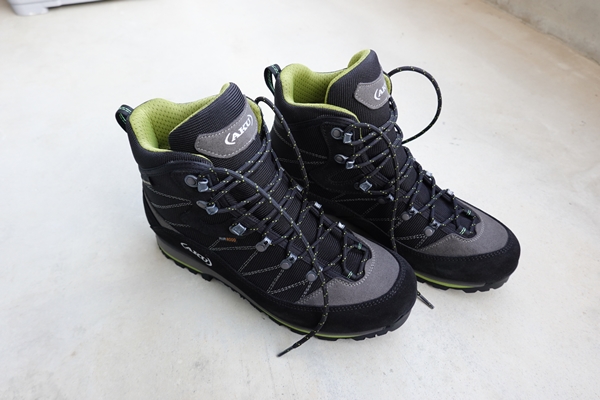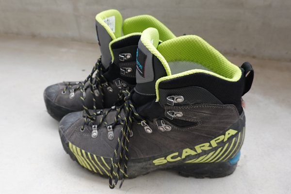 自分用の五代目トレッキングシューズ。SCARPAは硬めのシューズなので、コロナ禍で近場の低山を