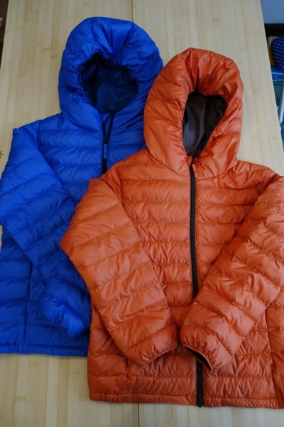 子供の防寒着。さすがにすぐサイズが変わる子供用にダウンは買えん。。2つでモンベルの子供用ダウン