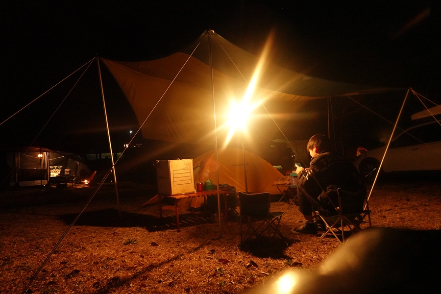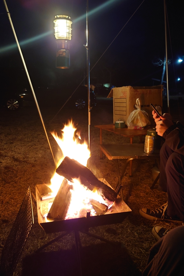 千葉に比べてだいぶ肌寒いので焚火が欠かせない夜。 |