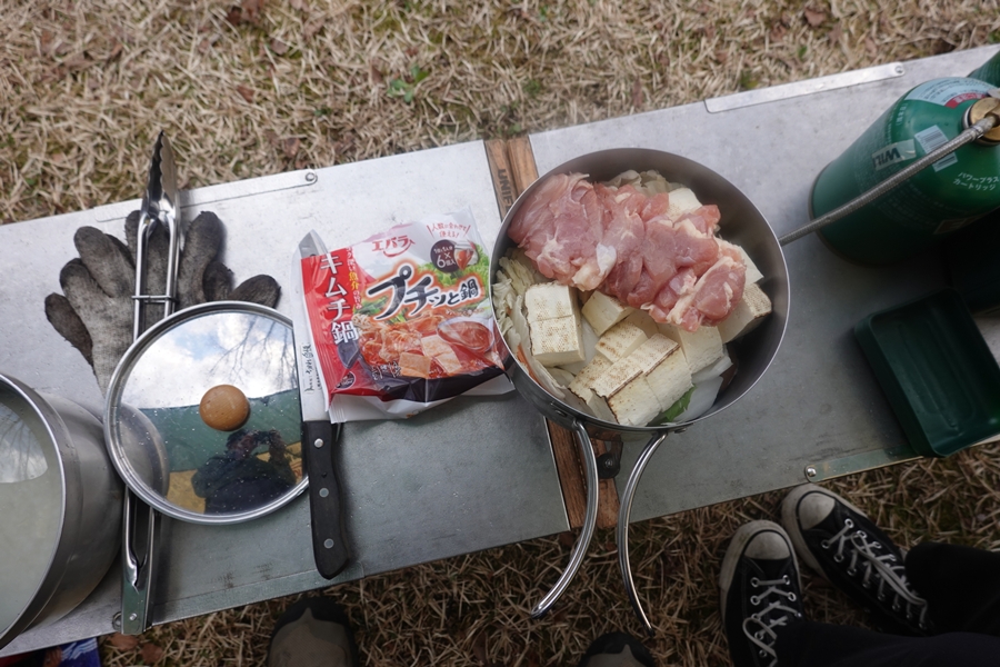 鍋の素の味が違うだけで次男との千葉キャンプと同じメニュー。 毎度ワンパターンですね(苦笑)。 |