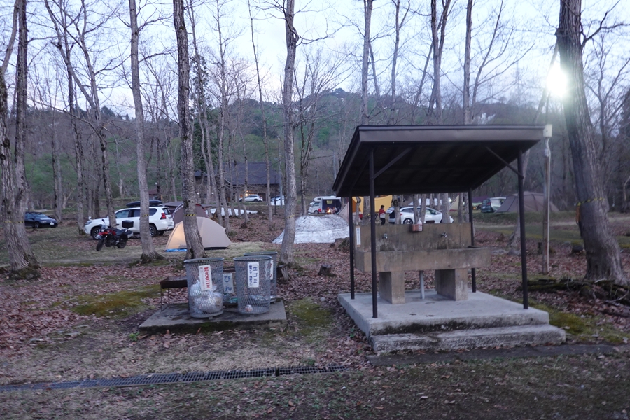Aサイト横の炊事棟。ここはお湯が出るようです。Dサイト内の炊事棟以外はお湯が出る? |
