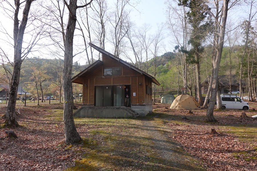 管理棟。1Fはトイレやシャワー室などがありきれい。 受付は2Fで薪やカップラーメン等を売っている売店の他、生ビールセットもあるようでした。 |