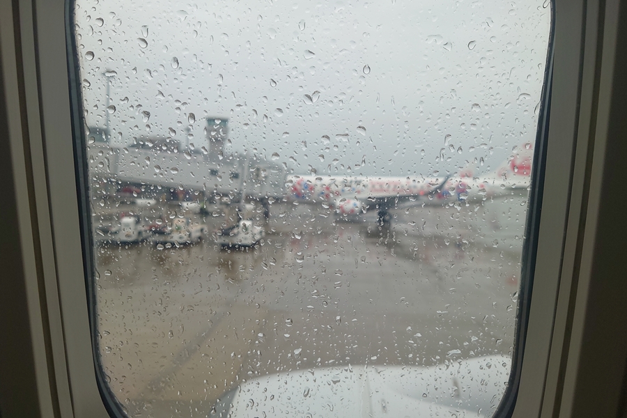 雨の仙台空港から飛行機に乗り北海道へ出発 |