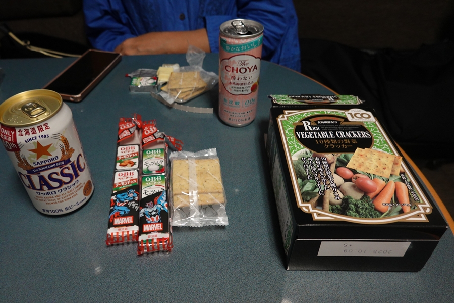 何とか清岳荘の駐車場にたどり着き、軽く一杯。やっぱりサッポロクラッシックでしょう〜。 |