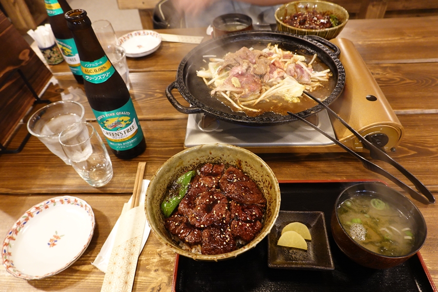 斜里岳から阿寒へ移動しキャンプ場で受付した後、阿寒湖温泉の東邦館で入浴して夕食どころを探す。 両国総本店が予約優先と書いていながらもラストオーダーギリギリに入れました。 |