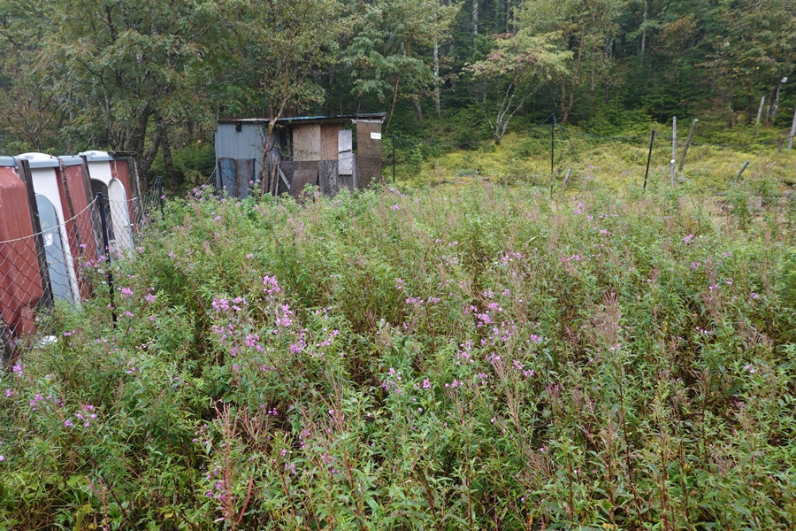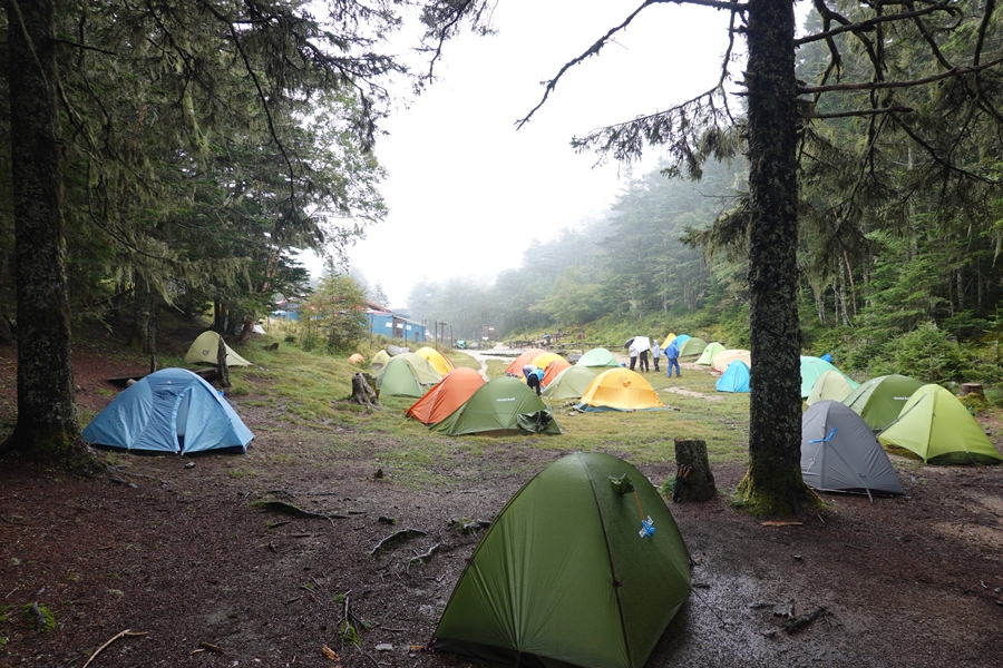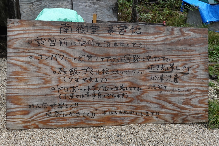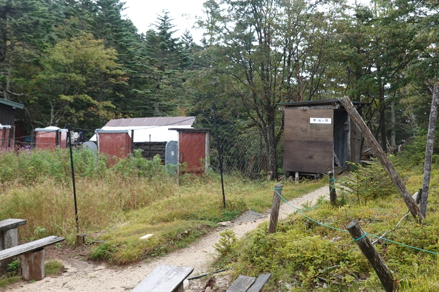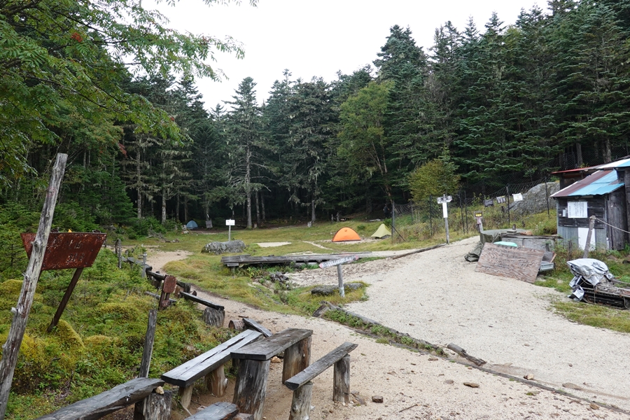 小屋の横に広いテントサイトがあります。 |